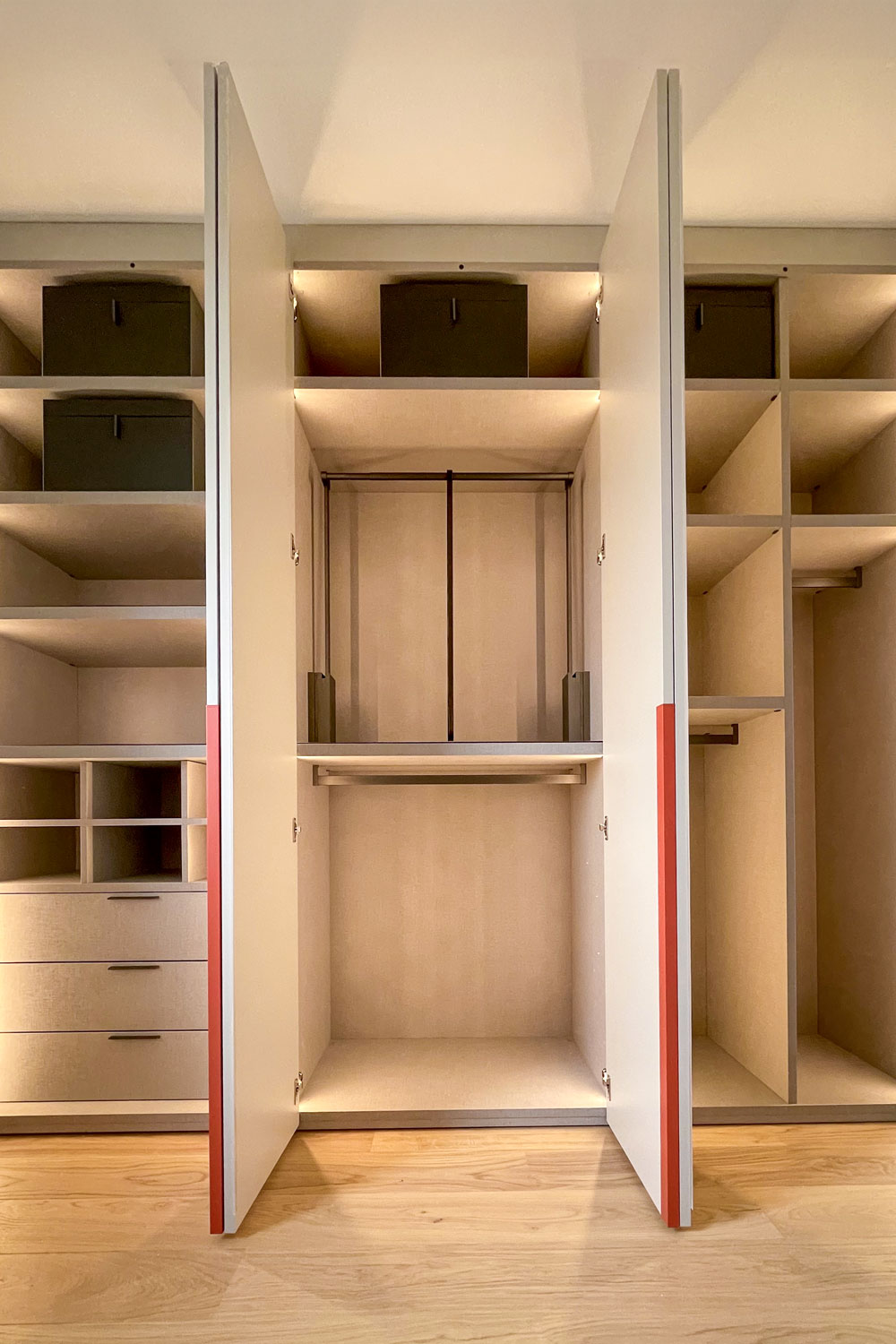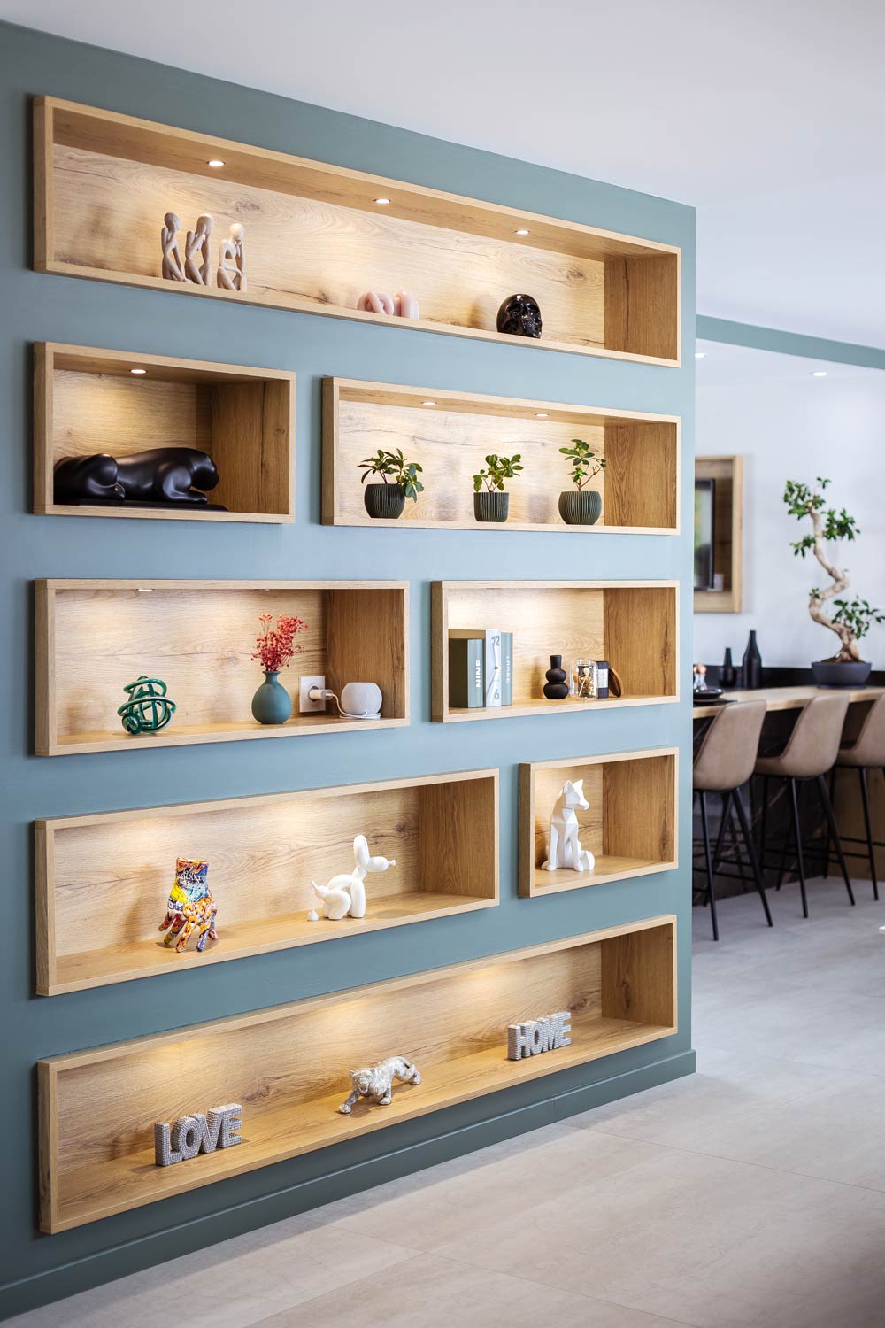 Nous réalisons des aménagements sur-mesure pour toutes les pièces de la maison, y compris les cuisines, salles de bain, dressings, bibliothèques, et meubles d’entrée.